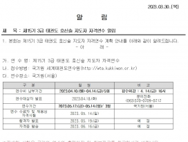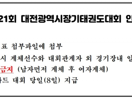 | 공지 | ![]() | 대전시태권도협회 | 135524 | 2022년 2월 15일 |