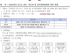 2025년도 KTA 선수, 지도자 및 선수관리담당자 등록 알림