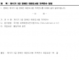 제13기 3급 장애인 태권도사범 자격연수 알림 c