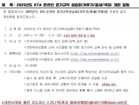 2025년도 KTA 온라인 경기규칙 강습회(겨루기/품새/격파) 개최 알림