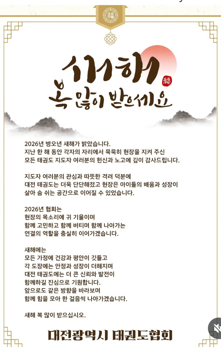 | 공지 | ![]() | 대전시태권도협회 | 125672 | 2022년 2월 15일 |
