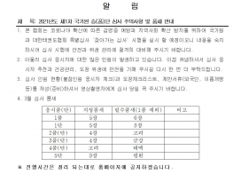 또한 원할한 심사를 위해 심사장에는 관계자외 출입을 엄격히 통제함을 알려드립니다.